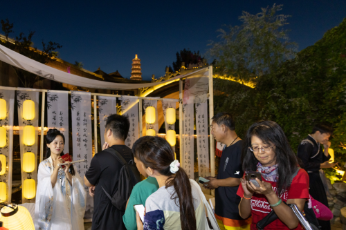 另一大亮点则是“十三花神落人间”活动,让游客有机会与花神们进行互动,通过飞花令-对诗词的活动形式,让游客们深刻体验到传统文化的魅力。只要游客们集齐十三个点位的花章,便可领取一份精美礼品!