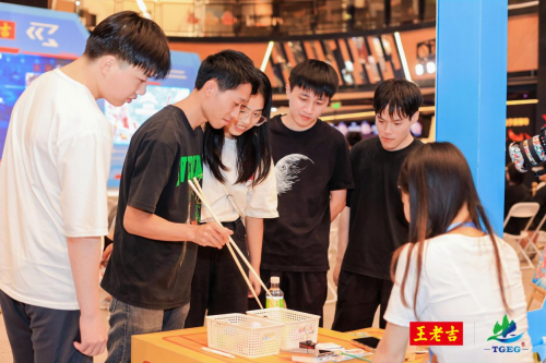 除了紧张激烈的比赛,本次海选赛现场也不乏许多轻松有趣的环节。全天开启的王老吉“吃、喝、玩、购”四个区域在舞台下人头攒动,美食试吃区也引来不少玩家排队参与,体验当地美食特色。比赛间隙,玩家积极参与“涂鸦有吉”“夹球有吉”“与吉同框”等游戏互动环节,现场笑声不断、掌声不断,一度充满欢声笑语。